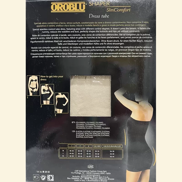 Спеціальне стягуюче плаття-бандо без швів, має зони з різної компресією. Не стискає бюст, робить живот пласким, талію і торс стрункими. Зменшує і моделює стегна і ягодиці без неприємного стиснення.